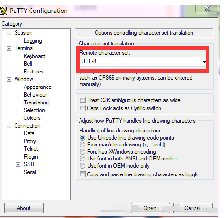 选择Windows下的Translation,然后右边的编码改为UTF-8即可。