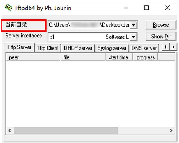 第九步:运行修改后的tftpd64.exe应用程序,可发现主界面上的英文字符串"Current Directory"已经汉化成中文字符串"当前目录"了。