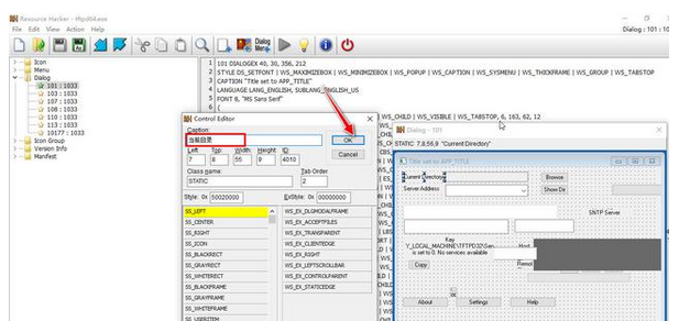 第七步:将英文字符串"Current Directory"的内容更改成中文字符串内容为"当前目录",再点击"OK"按钮应用生效。