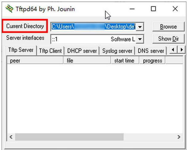 第一步:打开tftpd64.exe应用程序,查看我们需要汉化的一个英文字符串为"Current Directory"。