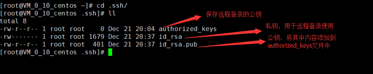 注意:公钥添加到authorized_keys文件后,且私钥已成功获取到本地后,删除服务器端公私钥 ,私钥一定要妥善保管。