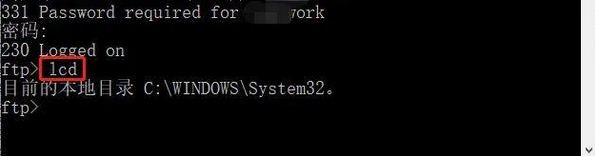 ⑦ 输入“lcd 本地文件目录”(就是说,想要下载到哪个文件夹下,就输入那个文件夹,如果不输入就是默认C盘的当前系统用户目录下)。