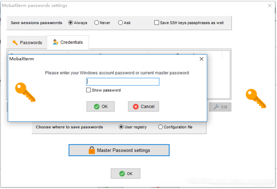 2.首次连接成功后需要设置主密码以保护所有已存储密码,主密码用于加密其它已存储密码