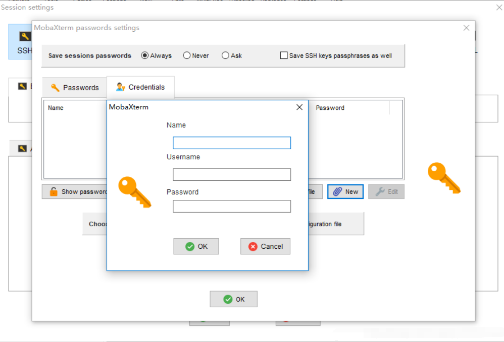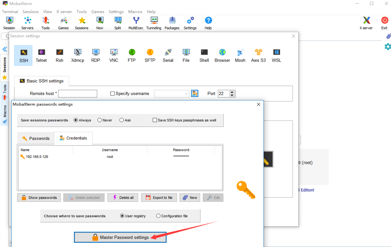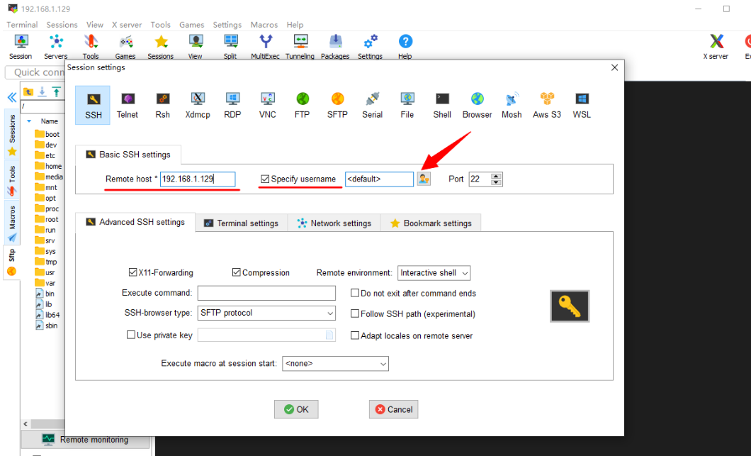 如果不通过mobaxterm本地终端ssh,也可以直接添加session填上用户名和密码,下次只需双击即可免密连接