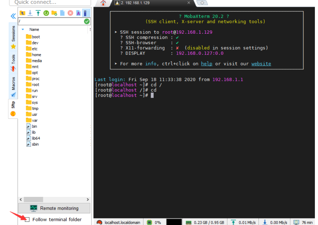 这个选项勾上就可以实时切换到当前虚拟机的路径,上面的Remote monitoring可以实时显示虚拟机的性能状态,默认是开启的