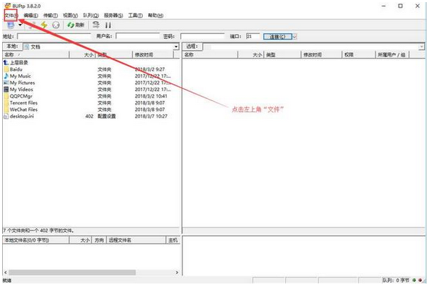 第一步:打开8UFTP的软件,点击左上角的“文件”