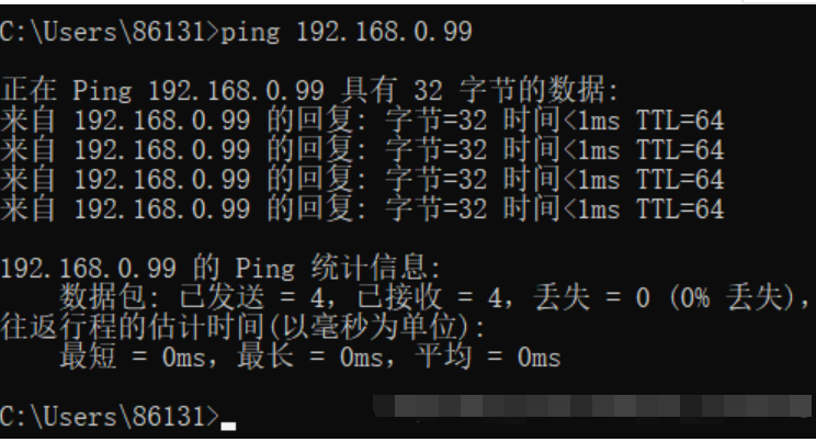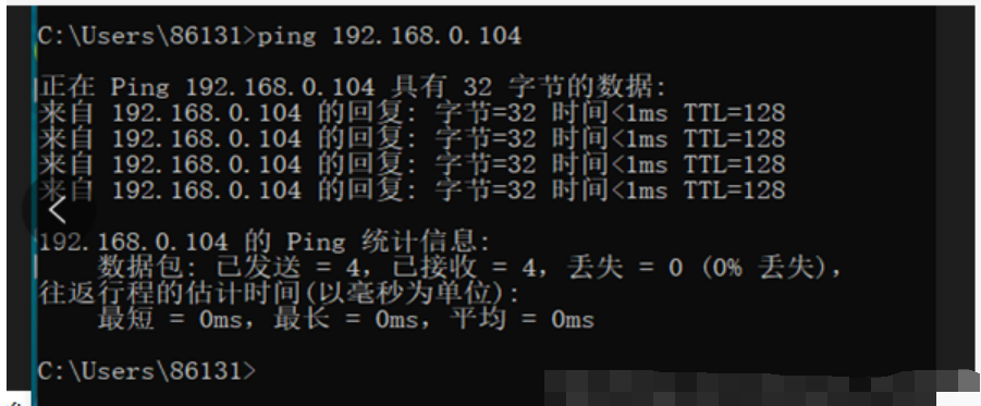 (4)在物理中win + R --> cmd --> ping 虚拟机IP地址来检测是否能够连通