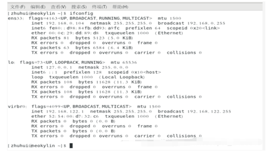 ifconfig 命令进行查看