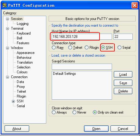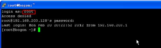 点击Open按钮,进行登录,要求输入用户名(root)回车,密码(输入过程不显示*号)如果用户名密码正确,则成功登录。