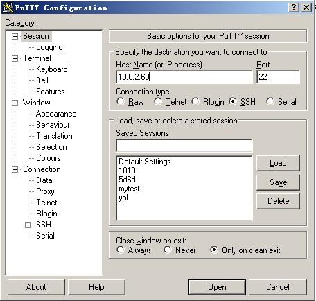 如果你下载了putty,请双击putty.exe然后弹出如下的窗口。