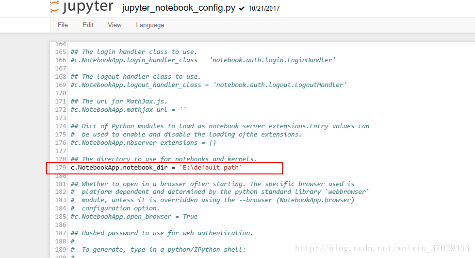 “# c.NotebookApp.notebook_dir = ''”为