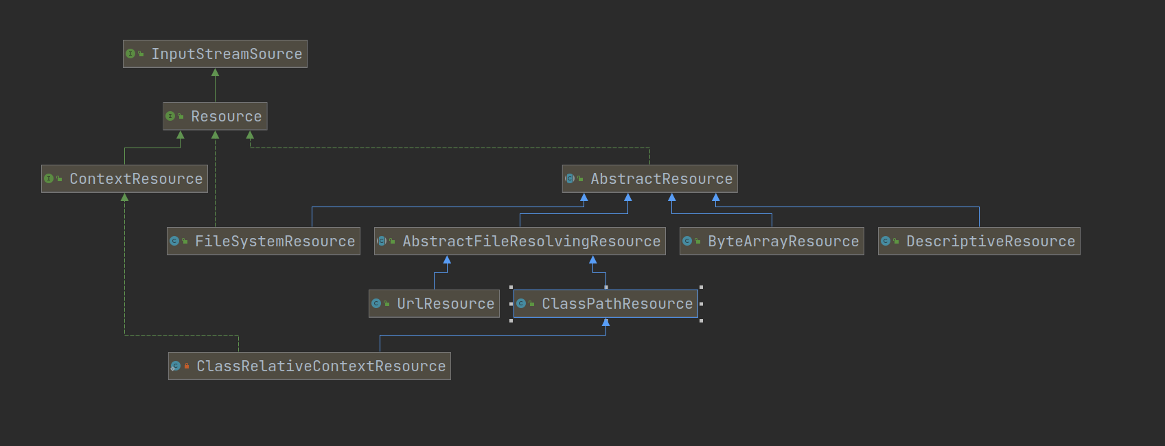 Resource体系达到了这样的目的:对于不同的文件来源都有一种实现来读取该文件,同时,拥有一个规范的接口。