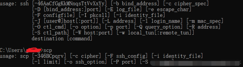 3、在cmd中分别输入ssh和scp看是否可用,如果返回usage:....等等,表示安装成功,然后就可以愉快的玩耍了。