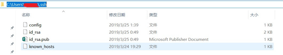 2、在你回车掉的命令中有id_rsa和id_rsa.pub的存放路径,默认是C:\Users\你的机器名文件夹\.ssh中(注意此处的.ssh文件夹不是隐藏的)