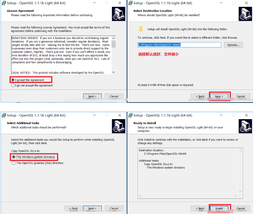 1、下载Win64OpenSSL_Light-1_1_1b.exe(注意选择32和64位,此处为64位的)。