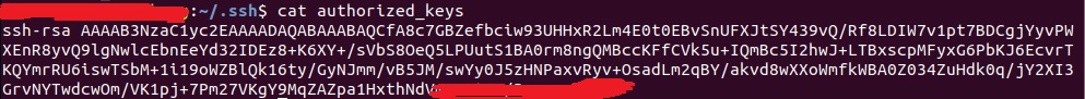 4、在linux中输入cat ~/.ssh/authorized_keys,即可查看公钥内容