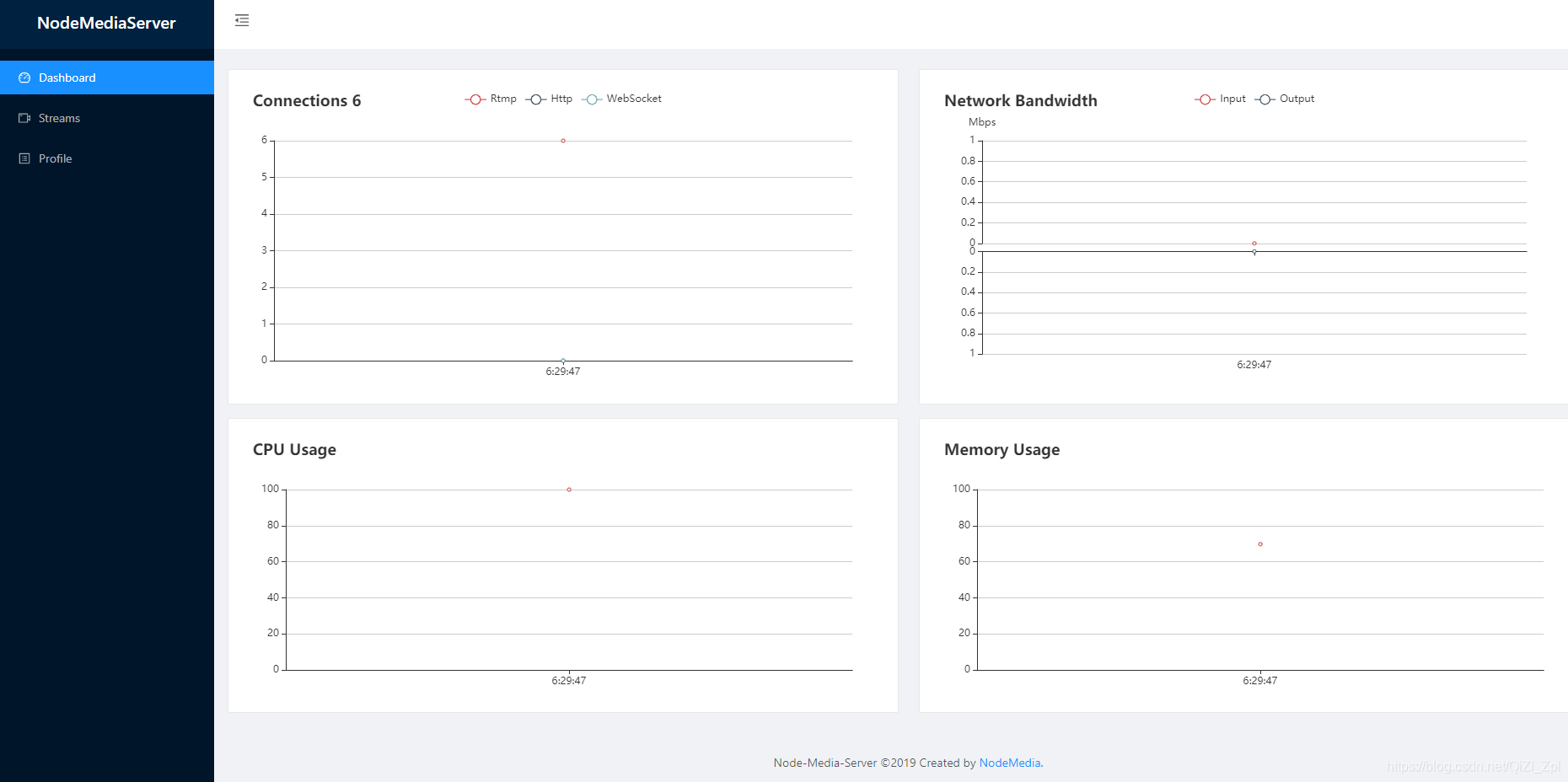 可以访问localhost:8000/admin地址,访问node-media-server的管理端界面。截图如下: