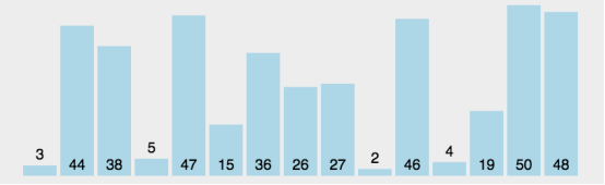 将列表分为有序区和无序区两个部分,最初有序区只有一个元素,即第一个元素。