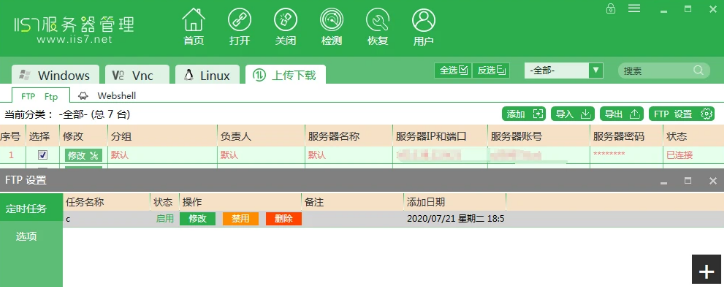 IIS7服务器管理工具可以批量管理、定时上传下载、同步操作、数据备份、到期提醒、自动更新。IIS7服务器管理工具适用于Windows操作系统和liunx操作系统;支持Ftp客户端批量操作。
