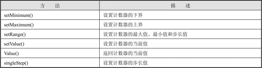 QSpinBox 类和 QDoubleSpinBox 类均派生自 QAbstractSpinBox 类。QSpinBox 用于处理整数值,QDoubleSpinBox 则用于处理浮点值,它们之间的区别就是处理数据的类型不同,其他功能都基本相同。QDoubleSpinBox 的默认精度是两位小数,但可以通过 setDecimals() 来改变。