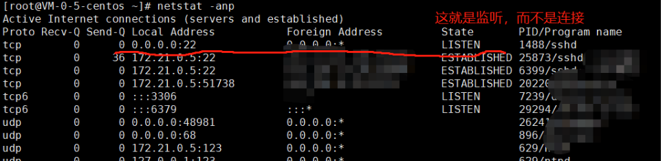 所有的连接和监听(就是tcp的监听,还未建立连接)