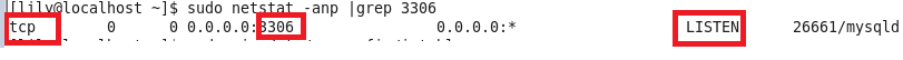 如下,我以3306为例,netstat -anp |grep 3306(此处备注下,我是以普通用户操作,故加上了sudo,如果是以root用户操作,不用加sudo即可查看),如下图1: