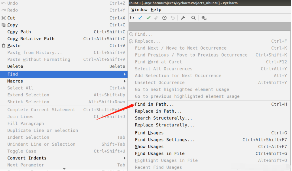 a.IDE如Pycharm将整个项目打开,Ctrl+H可打开整个项目文本内容搜索功能