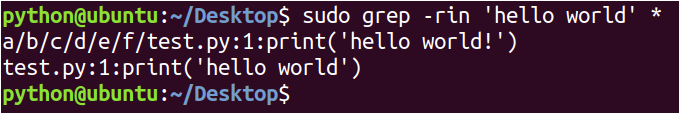 在当前目录下查找所有文件内容含 'hello world' 字符串的文件:sudo grep -rin 'hello world' *