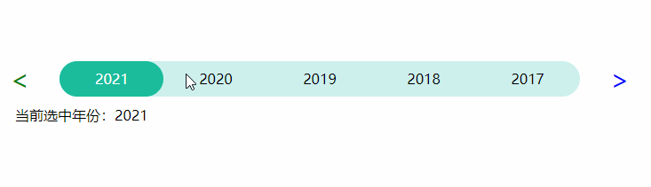 - 布局: 左右箭头使用实体字符 < 和 > 年份5个span。使用用flex布局横向排列。