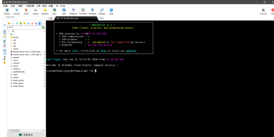 该工具的左侧还可以实现数据的传输,所以功能还是挺强大的。当然,MobaXterm上传数据和下载数据不是很方便。
