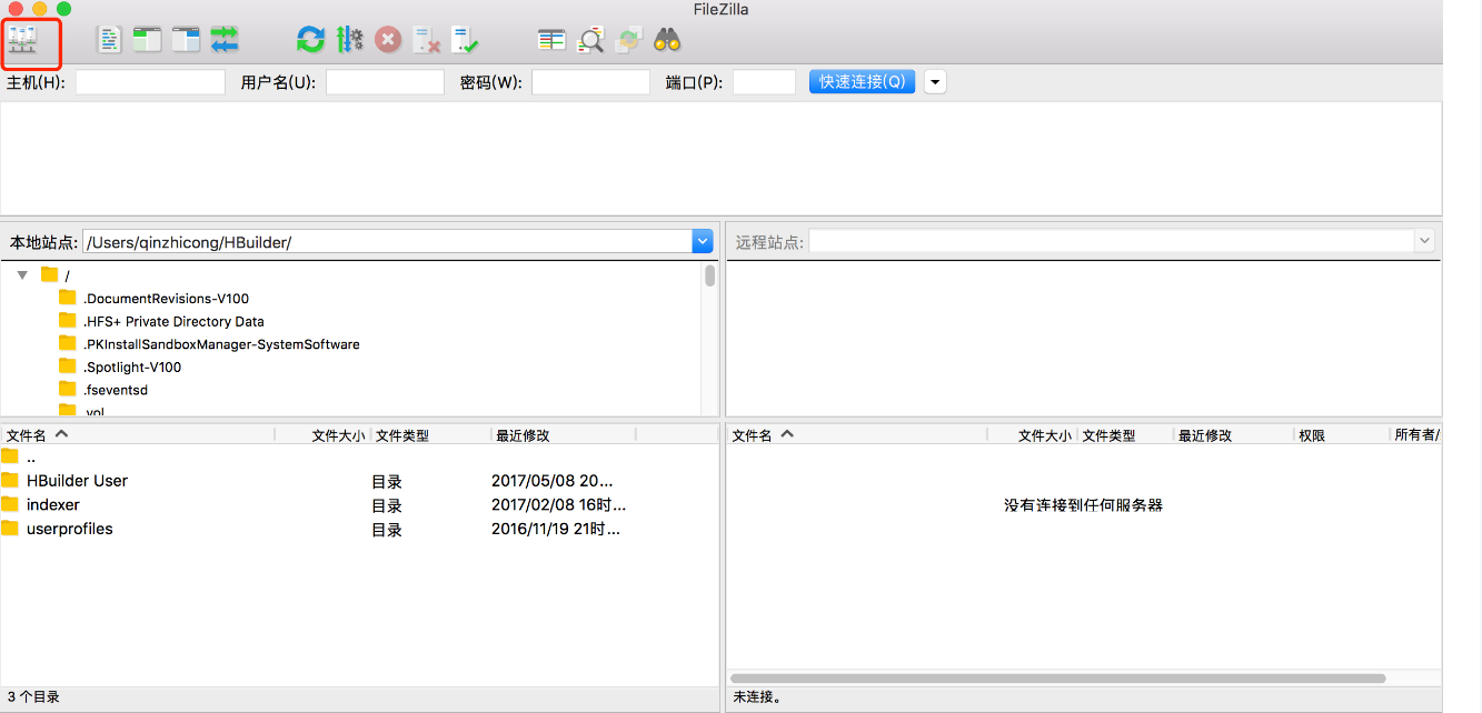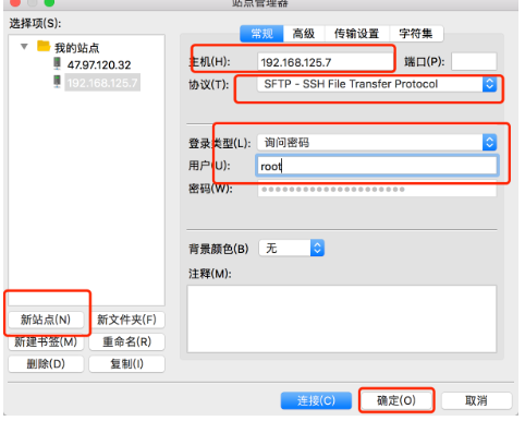 1、打开站点管理,新建站点,输入主机、协议、登录类型、用户名,点击连接,如下图:
