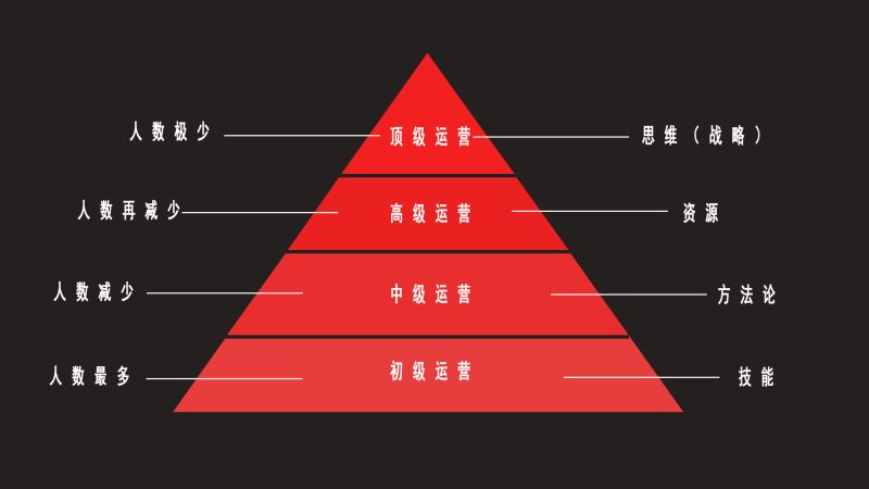 但是我今天把运营等级分为了初级、中级、高级、顶级四个等级,而每一个等级对于的岗位要求能力以及现在从事的人数也不尽相同。今天我们就来说说这四者之间有什么不同?进而导致“同人不同命”的。