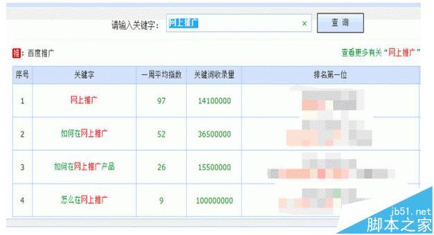 关键词指数筛选:利用我们的站长工具查询与网站行业有关的关键词,然后在从列表中挑选出预定关键词,然后在打开一个查询页面查询这个预定的关键词,从中挑选与网站符合的关键词指数大小来设置网站关键词,比如我们查询推广这个关键词,下面会出现很多的推广关键词指数从几千到几十不等,找到与我们网站相关的推广关键词,比如上网推广这个词,然后在第二页查询关键词页面查询你挑选好的关键词,也就是预定关键词,查询预定关键词就会出现如下图