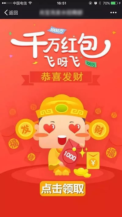 5、在点开红包页的前段加一层保护,利用有赞或者微盟的域名做一个图片跳转,如图: