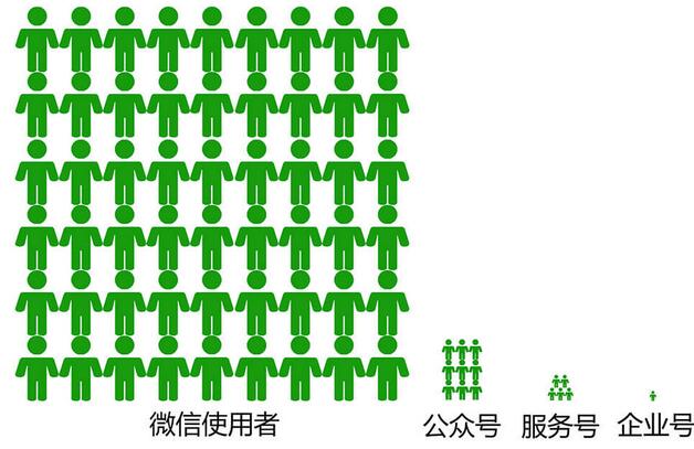 除了微信使用者属于零门槛的服务接受方外,公众号都是服务提供方。在订阅号、服务号、企业号三种公众号里,运营复杂程度和申请要求依次提高,拥有者数量也逐级减少。