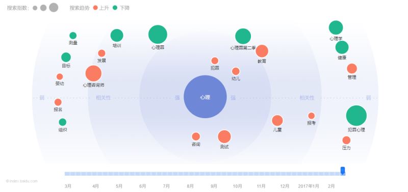 比如以心理为例,通过百度指数能看到,网友普遍对心理测试、犯罪心理学、幼儿心理等细分领域更感兴趣,那么我们命名账号的时候,就可以朝这些方向靠。