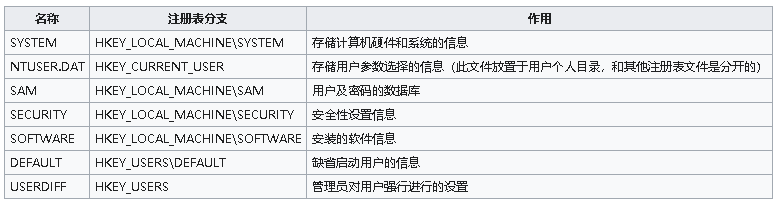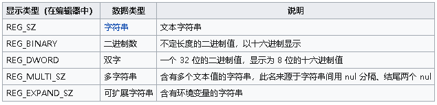 注册表是Microsoft Windows操作系统和其应用程序中的一个重要的层次型数据库,用于存储系统和应用程序的设置信息。由键(key,或称“项”)、子键(subkey,子项)和值项(value)构成。一个键就是树状数据结构中的一个节点,而子键就是这个节点的子节点,子键也是键。一个值项则是一个键的一条属性,由名称(name)、数据类型(datatype)以及数据(data)组成。一个键可以有一个或多个值,每个值的名称各不相同,如果一个值的名称为空,则该值为该键的默认值。