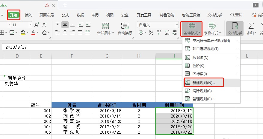 2.开始>条件格式>新建规则。