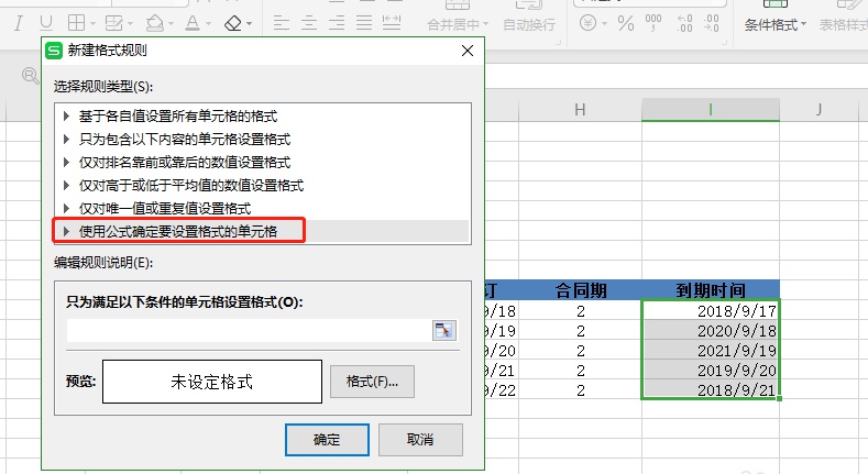 3.使用公式确定要设置格式的单元格