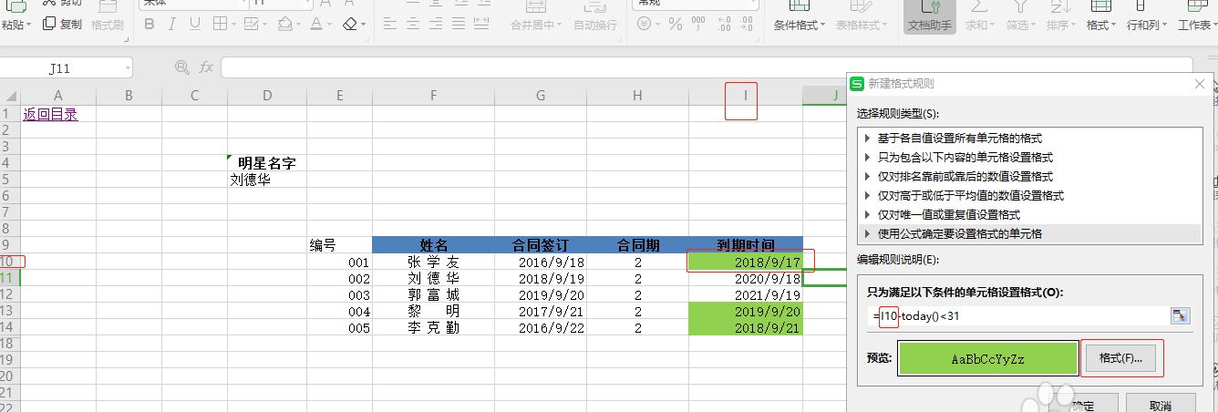 WPS表格合同到期自动提醒的小技巧: