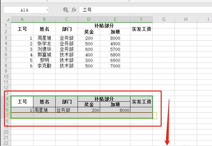 wps表格双行表头工资条制作的方法:
