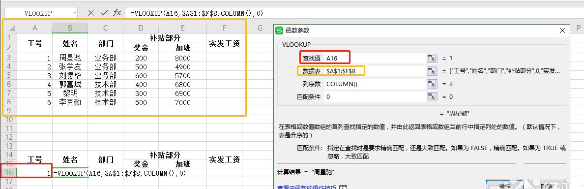 3.姓名列下单元格,公式,插入公式>vlookup。数据表:全选表格后,按F4可以快速转换成绝对引用。