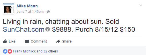 另一个组合域名sunchat.com则注册于2003年,直译为“阳光聊天”,2012年8月由Mike Mann花150美元收购而来,很适合搭建聊天类软件以及社交论坛等。此前迪拜就有一款名为sun chat社交APP与之对应。