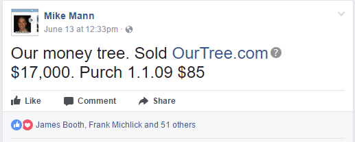 域名ourtree.com成交价为17,000美元,直译为“我们的树”。该域名由Mike Mann 于2009年仅花85美元收购。