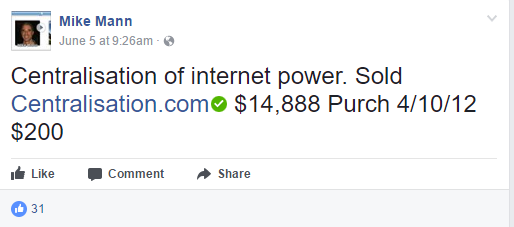 另外,域名Centralisation.com和Dalwhinnie.com则分别以14,888美元和20,000美元成交,成本分别为200和500美元。其中,Centralisation.com是“集中”的意思;Dalwhinnie.com则对应“达尔维尼”洋酒。