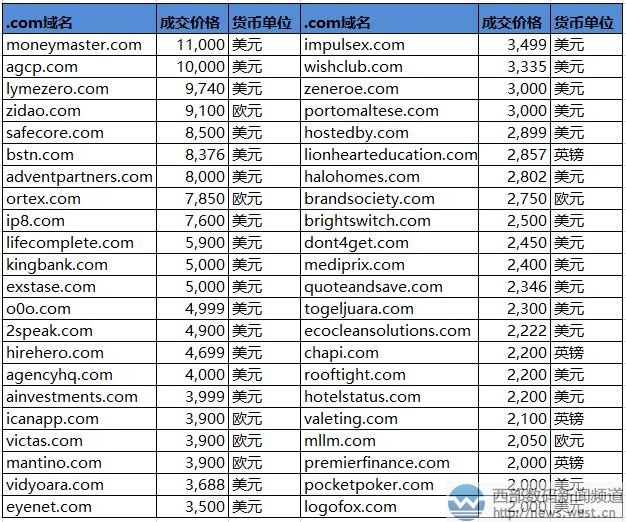 本文转载自新闻资讯,原文链接:Sedo交易榜:意大利域名夺得冠军!“比特币”域名bitcoins.co拍出五位数!
