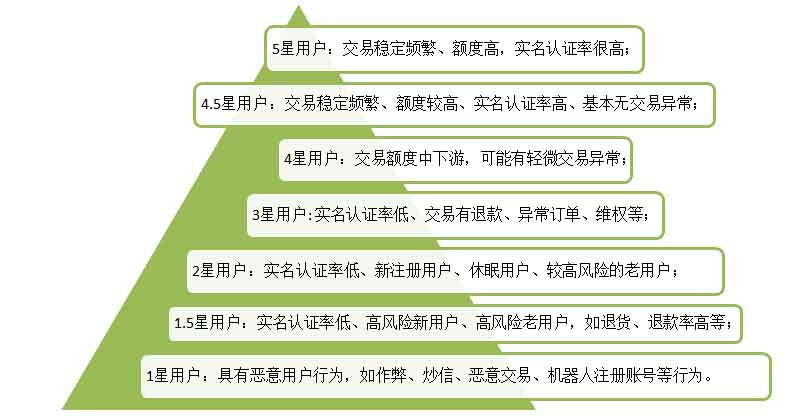 评级主要根据消费者的购物习惯,数据进行评判的,主要包括:个人信息,如个人账号完整性、真实性等;交易信息,如交易额、异常交易特征等;评价信息,如好中差评数、评价纠纷等;退款信息,如退款数、退款率等;物流信息,如无物流交易、重复物流单号等;维权信息,如维权次数、维权判决结果等;行为风险,如临时性的交易异常行为等。