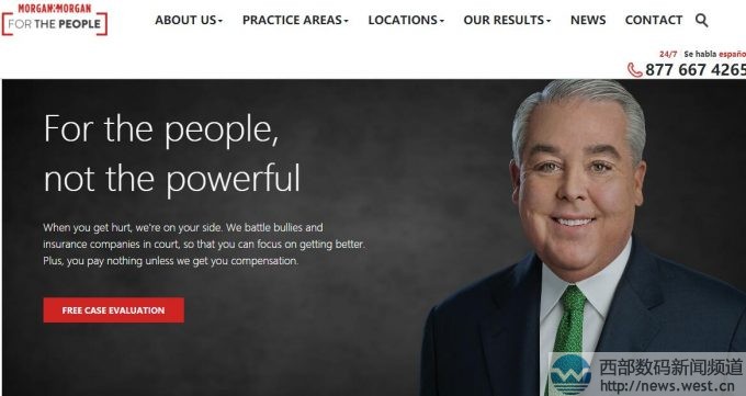 摩根摩根公司(Morgan & Morgan PA)由一家最早创立于1988年的律师事务所发展而来。该公司成立之初仅有3名律师,但经过近30年的发展,目前已经在美国多个州设立了办事处,旗下共有律师350名,主要致力于为受到人身伤害(personal injury)的客户提供法律支持。该公司目前的官网域名为forthepeople.com。