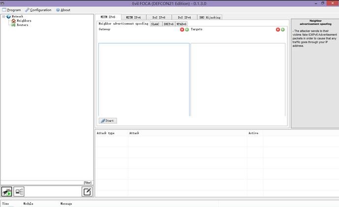 EvilFoca是Windows环境下基于.NET FrameWork的一款轻量级的劫持测试工具。与BackTrack和Kali_Linux下复杂的命令相比,EvilFoca更加小巧,轻便,简单,但其效果更加显著高效。