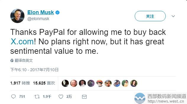 本文转载自新闻资讯,原文链接:肥水不流外人田!极品域名X.COM又被Paypal前创始人买了回去
